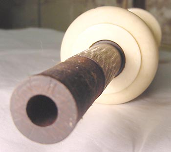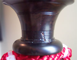 На этой картинке мы можем видеть то, как не нужно крепить металлическое кольцо на деревянную часть трости. Вместе они должны образовывать общую трубку без всяких пустот. Здесь этого, как мы можем видеть, нет.